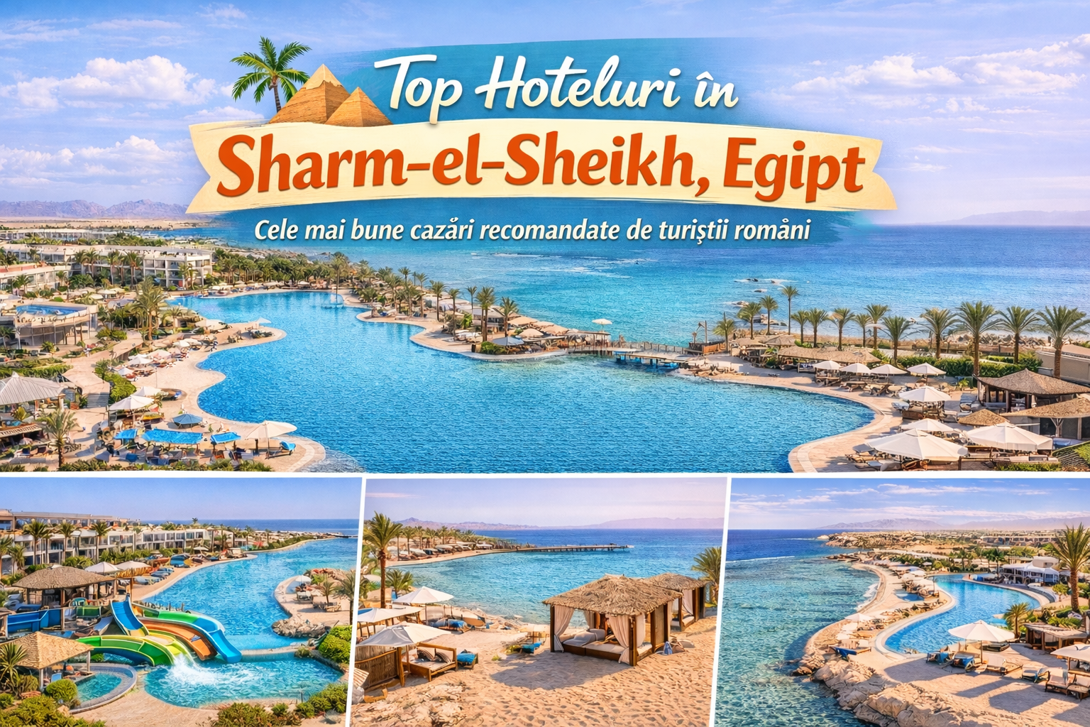 Top Hoteluri in Sharm-el-Sheikh (Egipt) – am analizat sute de recenzii lăsate de turiști români, atât de cei care au mers pe cont propriu, cât și de cei care au ales pachete prin agenții de turism, pentru a descoperi care sunt cazările cu adevărat apreciate pentru servicii, curățenie și raportul corect între preț și calitate.