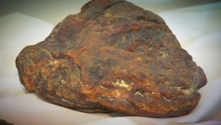 Rășina fosilă a atras atenția unei rude a femeii care murise în 1991. Moștenind ceea ce el considera o rocă, a examinat mai atent bucata de chihlimbar și a dedus că ar putea fi o piatră semiprețioasă de mare valoare. Și nu a greșit. A vândut obiectul unic statului român, care a catalogat rapid piesa drept tezaur național.